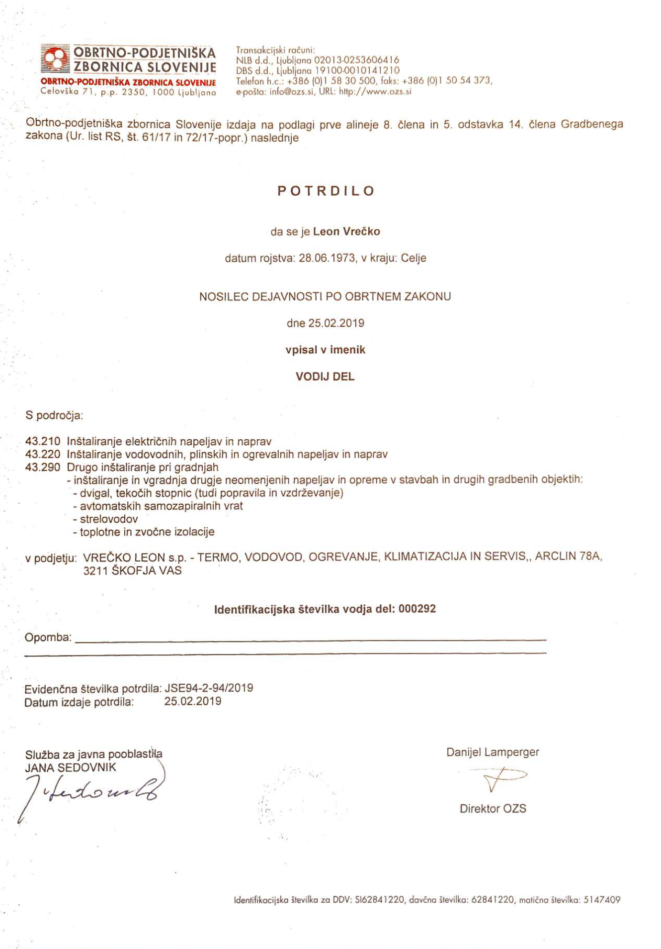 Certifikati in usposabljanja